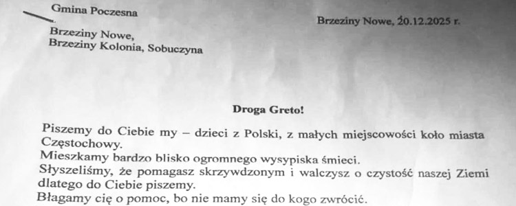 Zobacz pismo →28 grudnia 2025 Dzieci z naszych sołectw zbierały podpisy pod petycją skierowaną do Prezydenta Rzeczypospolitej Polskiej Karola Nawrockiego, Rzecznika Praw Dziecka, Grety Thunberg, przedstawicieli mediów oraz organizacji ekologicznych W petycji wyraziły swój sprzeciw wobec planowanej rozbudowy wysypiska śmieci w Sobuczynie.